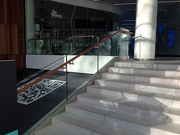 Ús de vidre serigrafiat a l'àcid i trempat amb perfils d'alumini