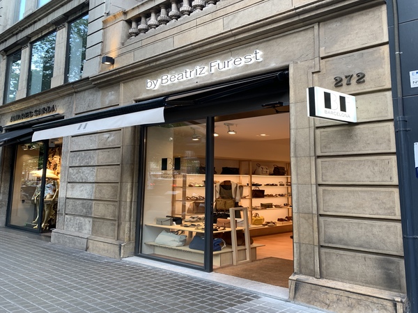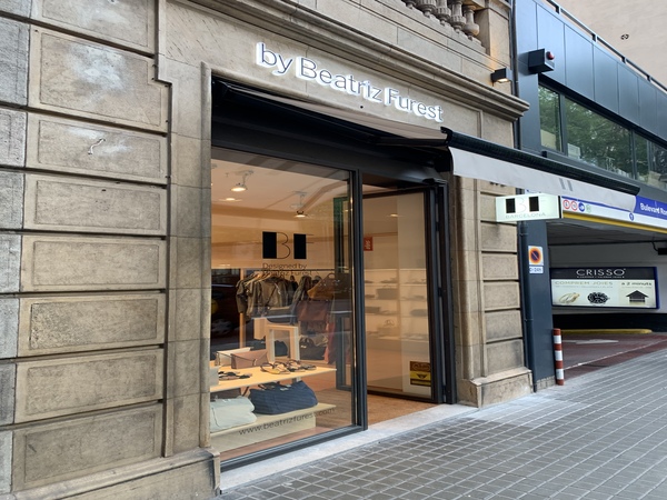 Porta d'acer i vidre laminat de seguretat, acabat termolacat amb pintura tipus Oxirón de partícules metàl·liques.