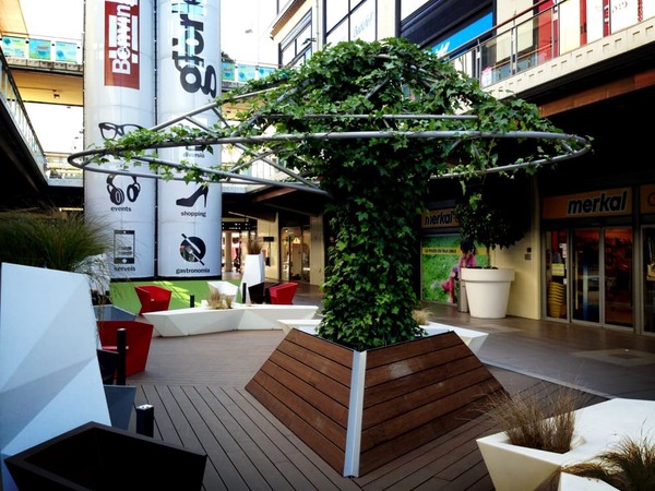 Múltiples actuacions en diverses fases de les obres de reforma del centre, incloent mobiliari urbà especial com arbres metàl·lics, pèrgoles, viseres d'acer i vidre, guingueta d'atenció al client, etc.