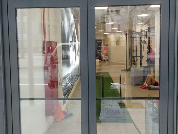 Murs cortina de vidre i fusteries d'alumini