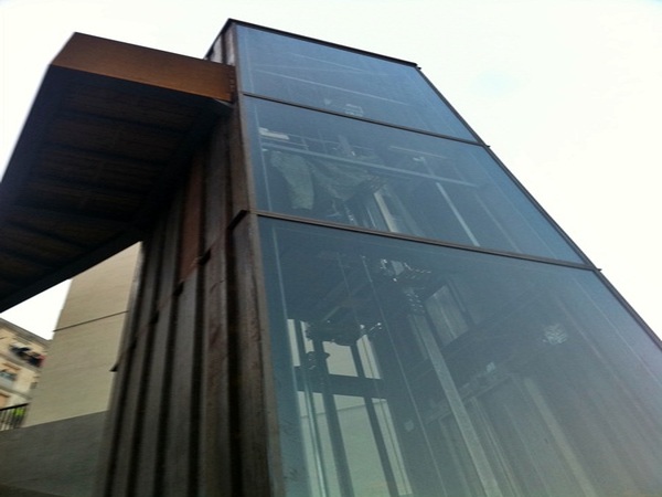 Envidriament laminar 8+8 transparent d'edicle d'ascensor d'acer corten, incloent perfileria de suport del vidre