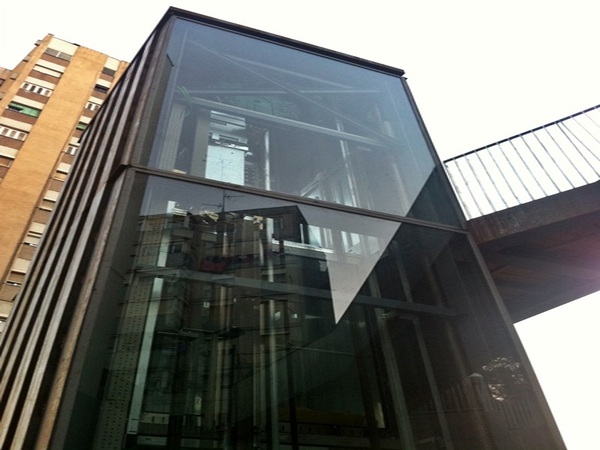 Edicle d'ascensor amb tancament d'alumini i vidre