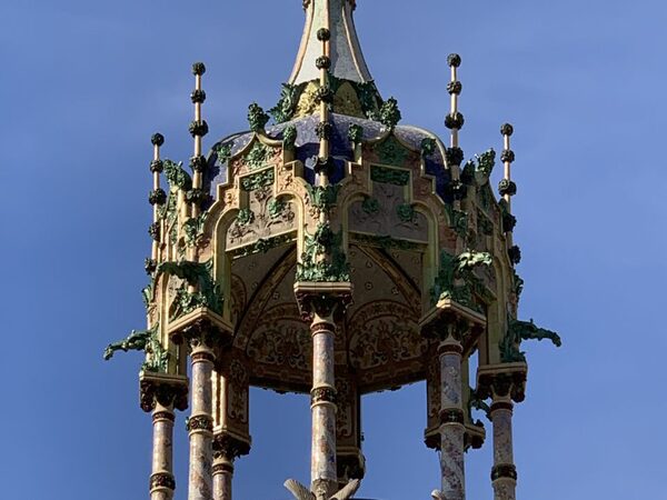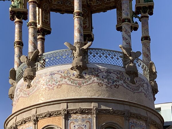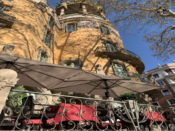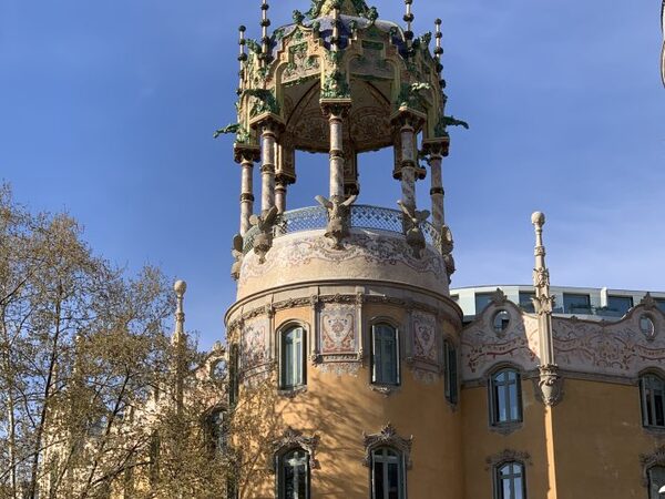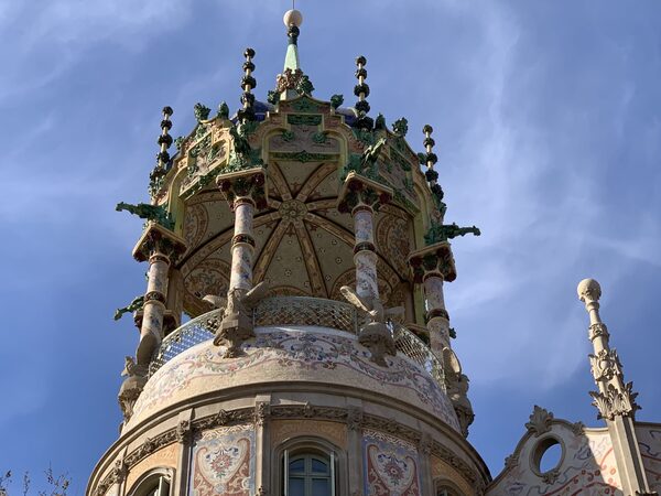 Restauració i execució de noves baranes corbades de forja al torreó per substituir les antigues malmeses. Baranes de forja a planta carrer, integrant jardineres.