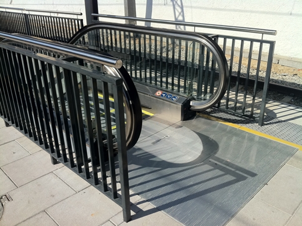 Edicle d'ascensor construït mitjançant estructura tubular d'acer, envidriament laminar transparent, així com ribets i frontal d'acer inoxidable setinat.