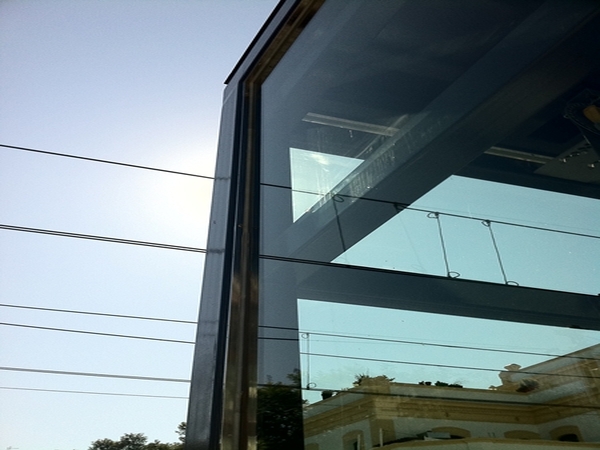 Edicle d'ascensor amb estructura d'acer i envidriat