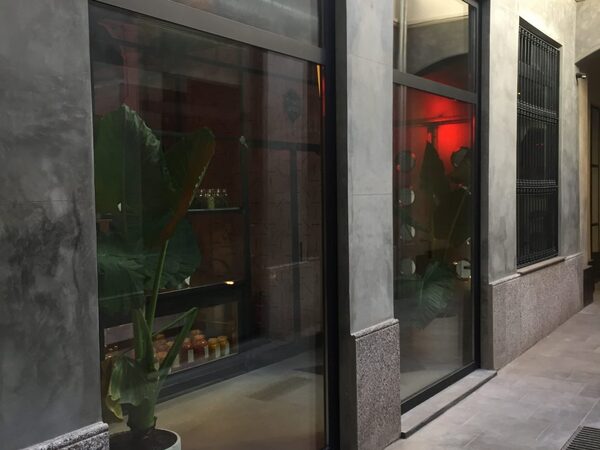 Fusteries d'acer i vidre tallafocs i aïllants tipus Jansen en façana passatge interior, amb acabat termolacat de la perfileria.
