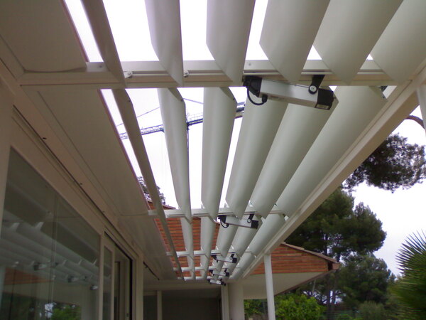 Gelosies de protecció solar en façana i pèrgola