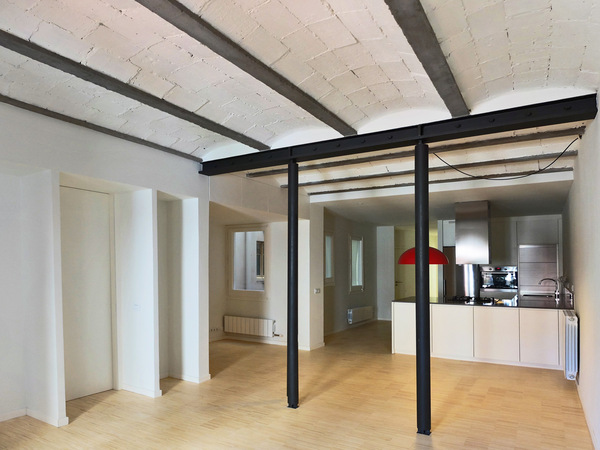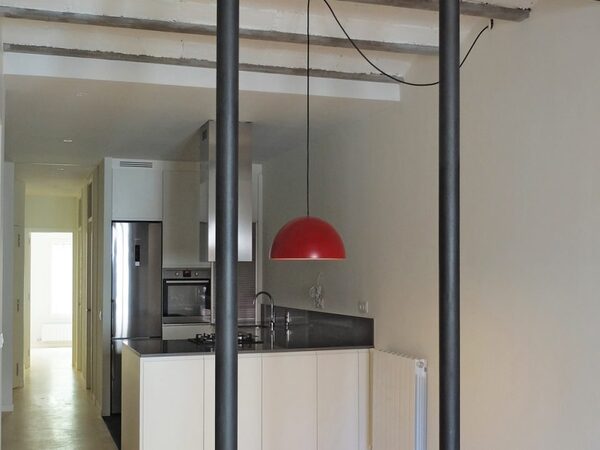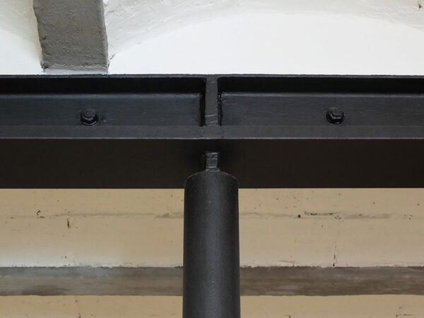 Estintolament amb perfils UPN empresillats mitjançant cargols i pilars circulars amb plaques d'ancoratge mínimes.