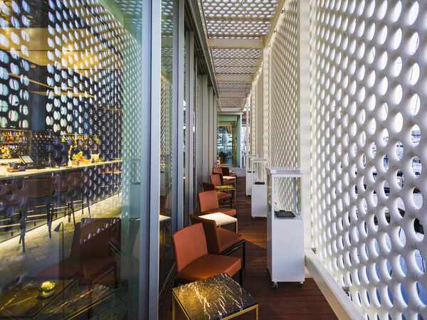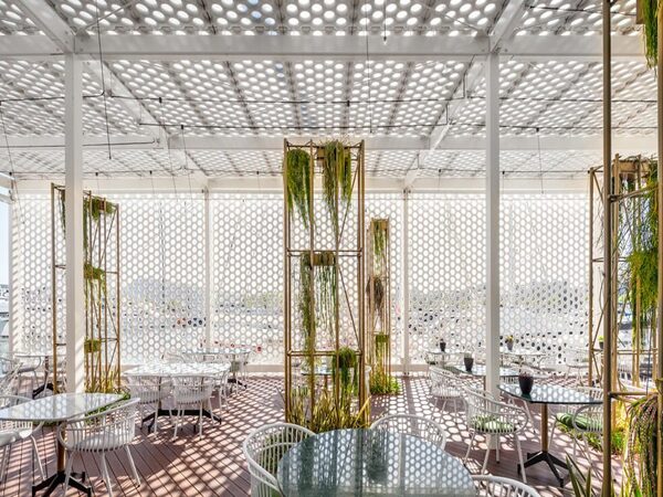 Estructura metàl·lica de l'edifici i pèrgoles exteriors, amb sistema ocult d'unió entre perfils amb metxes interiors fixades mitjançant cargols avellanats. Acabat galvanitzat en calent per posterior pintat a obra. Sistemes d'atirantament regulables per arriostrament de l'estructura. Baranes exteriors d'acer galvanitzat i lacat, amb malla tipus X-Tend d'acer inoxidable.