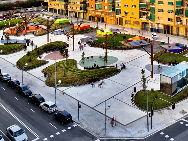 Encintats corbats d'acer i pèrgoles fotovoltaiques