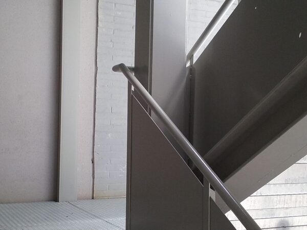 Execució de façana metàl·lica de xapa perfilada, perforada i prelacada en diferents colors, incloent subestructura posterior de subjecció. Estructura metàl·lica, esgraonat de xapa llagrimada galvanitzada i baranes pel cos d'escala annex.