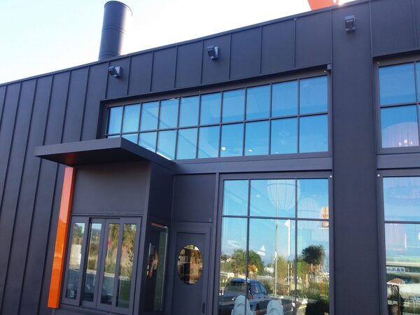 Fusteries d'alumini lacat amb vidres de control solar per les façanes de l'edifici. Quarterons d'alumini, vidres tipus listral, guixeta per comandes amb vehicle, etc. Estructures d'acer per suport de façana de lames de fusta, portes corredisses d'acer per accés al recinte, etc.