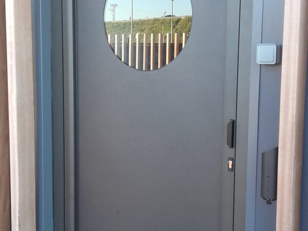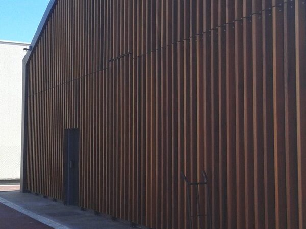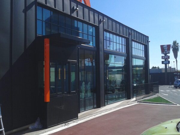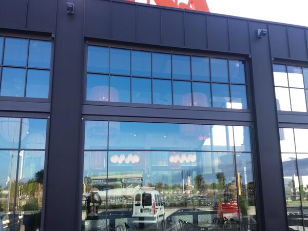 Fusteries d'alumini lacat amb vidres de control solar per les façanes de l'edifici. Quarterons d'alumini, vidres tipus listral, guixeta per comandes amb vehicle, etc. Estructures d'acer per suport de façana de lames de fusta, portes corredisses d'acer per accés al recinte, etc.